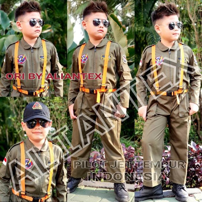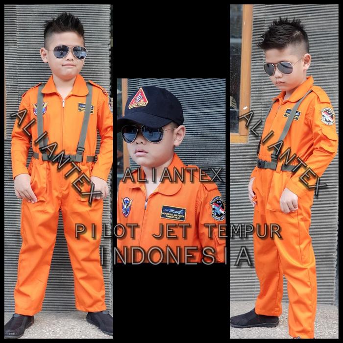 BAJU PILOT TEMPUR ANAK/ KOSTUM ANAK/ BAJU PROFESI ANAK/ BAJU PENERBANG - ORANGE S