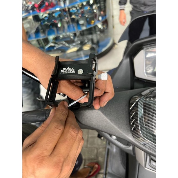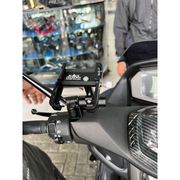 Holder Phone Black Diamond P10 P30 Tempat Dudukan Simpan Hp Motor Universal Nmax, Fazzio, Pcx, Xmax, Aerox, Adv, Lexi, Vario, Scoopy, Mio, Freego, Beat Dll Original Black Diamond