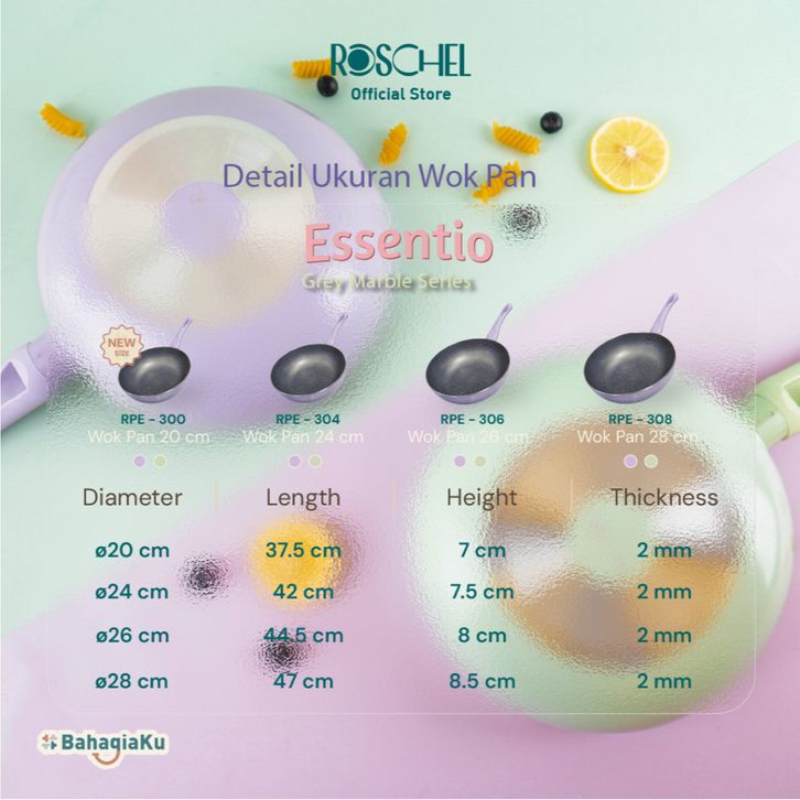 Roschel Essentio Marble Non-Stick Wok Pan 20, 24 , 26 , 28 cm Panci Wajan Penggorengan Kuali Anti Lengket