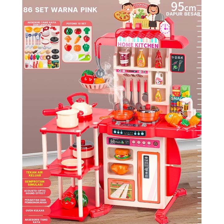 FUNTOY 86/54 PCS 95CM Mainan Kitchen Set Jumbo dengan Wastafel Mainan Anak Spraying Mist Kitchen