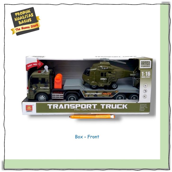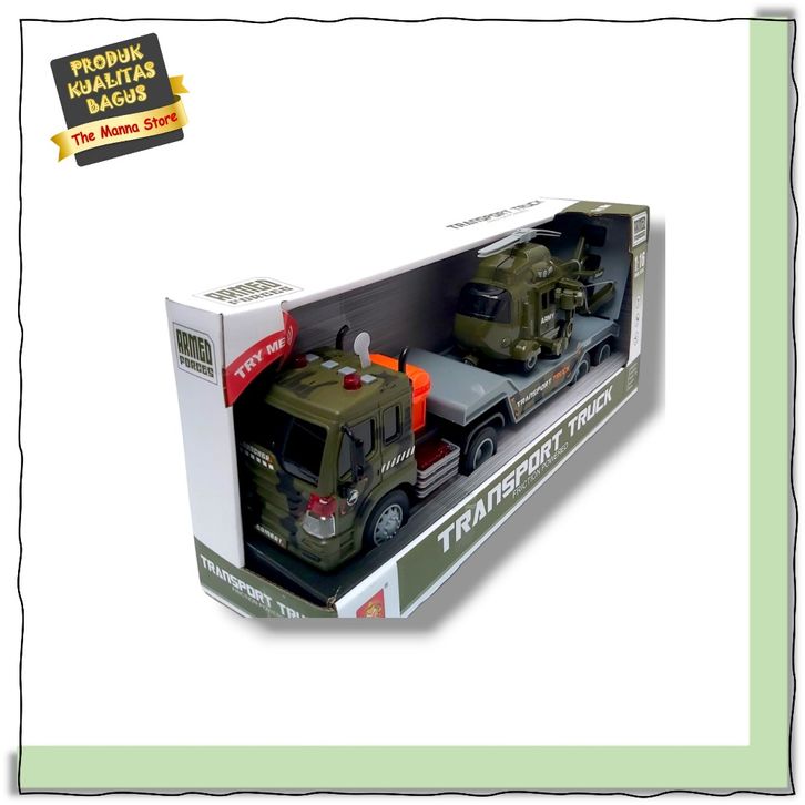 Mainan Anak Armed Forces Transporter Truck Helicopter with Sound and Light Friction Powered 1:16 Truk Helikopter Kualita