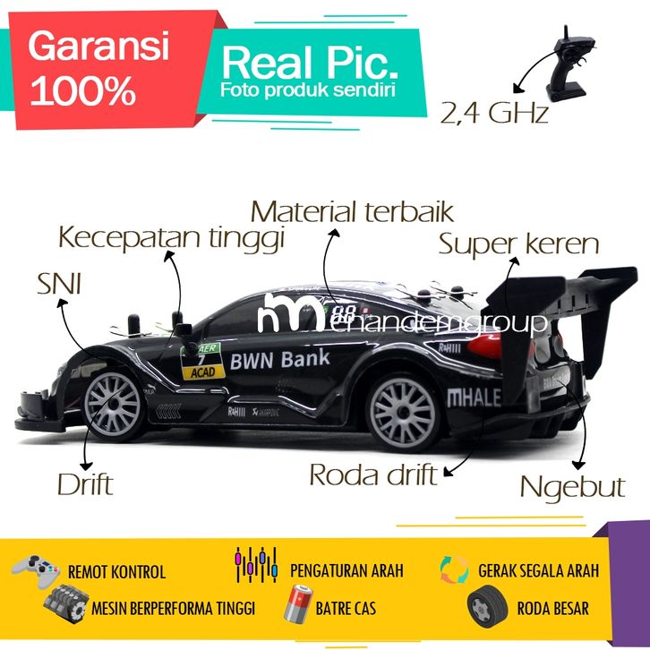 Mainan Mobil Remot Kontrol Rc Drift Sedan Balap 4WD Sports Cas Mustang Black Series