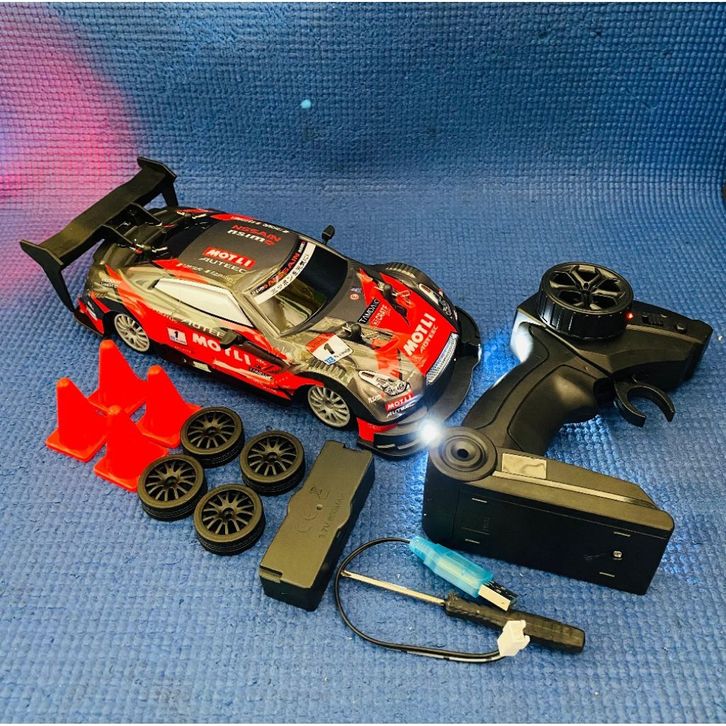 Free Batre Roda Serep Mobil RC Propo Nissan GTR Drift 4WD Batre Cash Nyala Lampu LED/ Mainan Mobil Remot Control Sport C