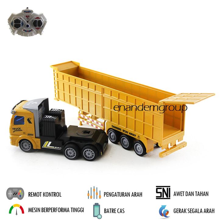 Mainan Mobil Remot Kontrol RC Dump Truk Kontainer Trailer Batre Cas