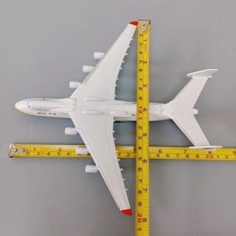 miniatur Diecast pesawat Antonov an 225 bahan full besi ada roda ada dudukan panjang 20 cm