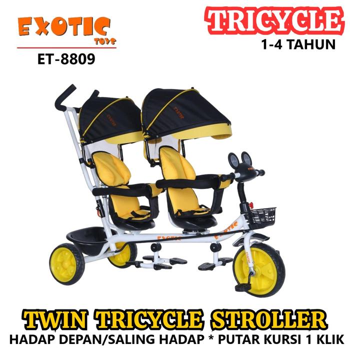 Exotic Sepeda Roda Tiga Anak ET8809 2 Kursi Hadap Depan & Saling Berhadap Lampu Musik Stroller Combo
