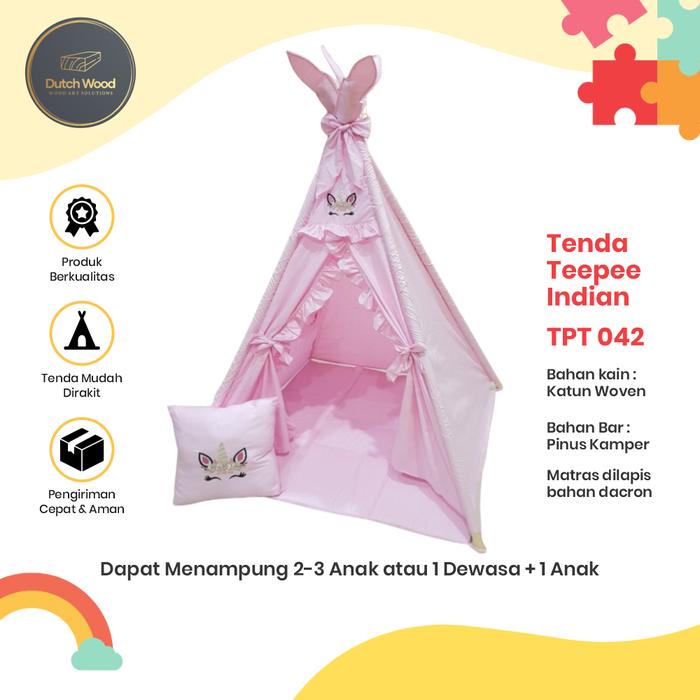 Mainan Berkemah Tenda Teepee TPT 042 Indian Tent Bonus Matras Tiang Kayu Rakit Mudah Dipasang Dutch