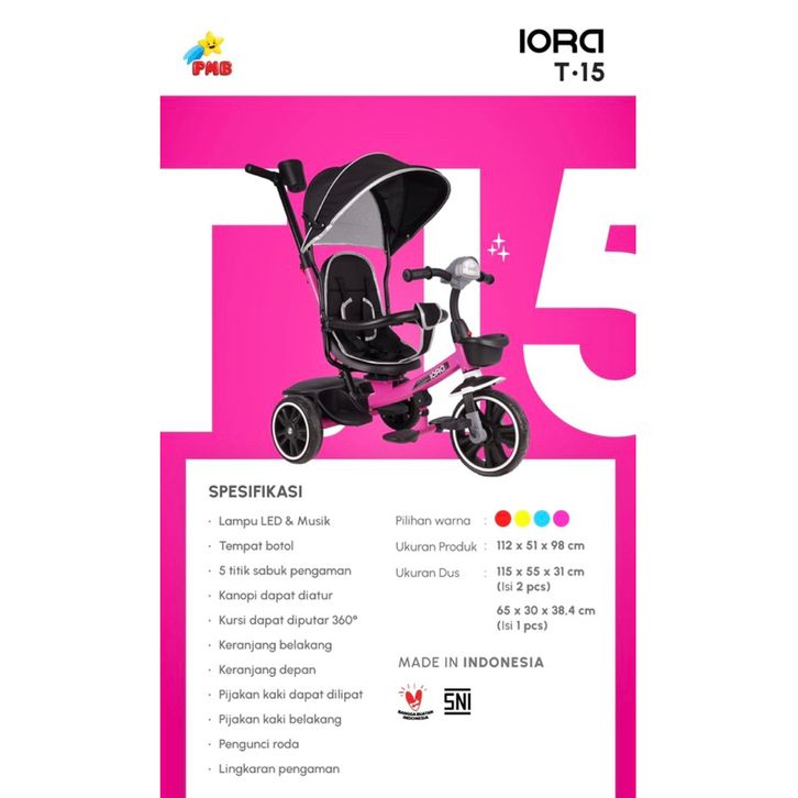 Sepeda Anak Sepeda Roda Tiga PMB T15 T17 T33 T35 T36 IORA T-17 T-15 Baby Tricycle Dorong Musik Lampu Murah