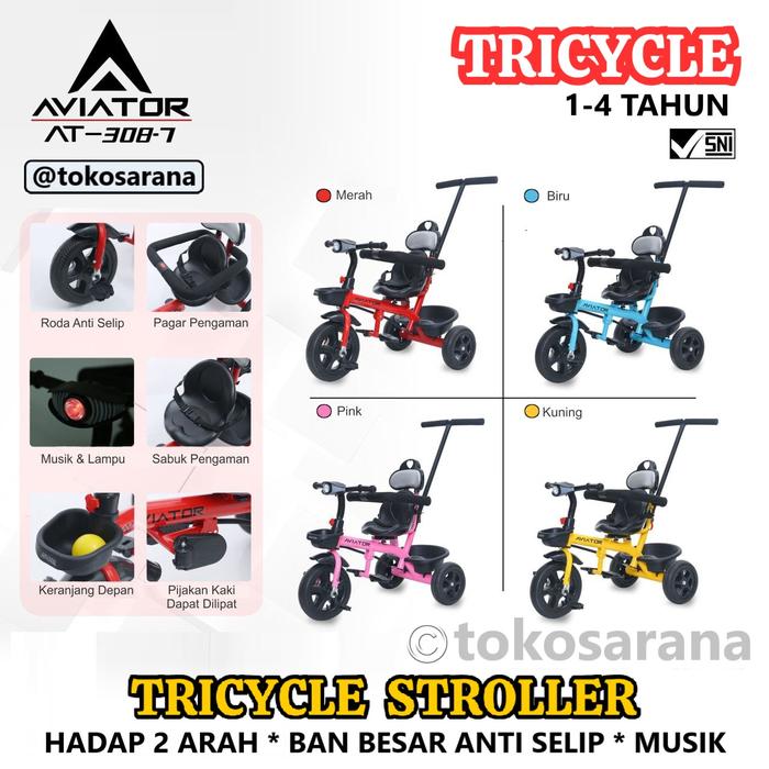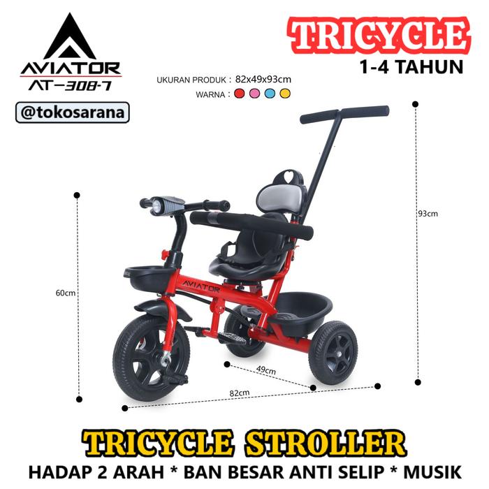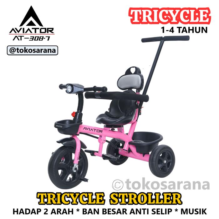 Sepeda Roda Tiga Anak Aviator AT308-7 AT125-7 Music Light Ban EVA Jumbo Tricycle Stroller