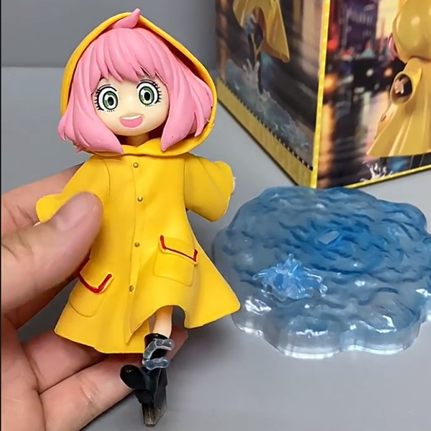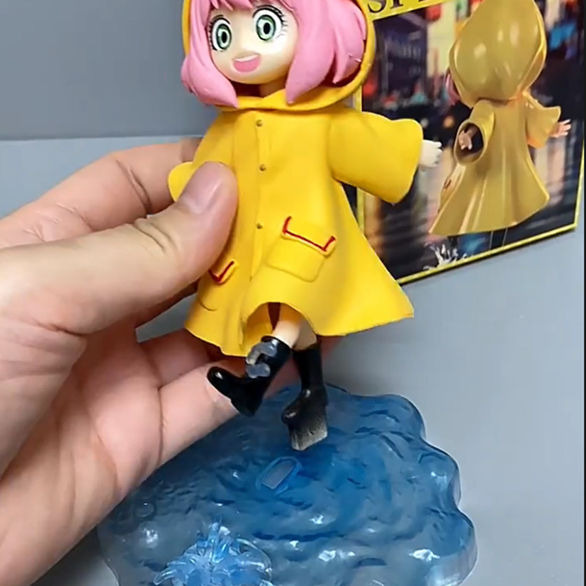 Action Figure Anya Spy X Family Q Version 13cm Figure Anya Raincoat Cute PVC Pajangan Meja Cake Topper