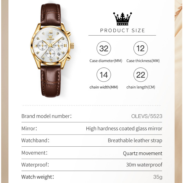 OLEVS Jam Tangan Wanita Anti Air Tali Kulit Original Luxury Bercahaya Kalender Quartz Watch Woman 5523