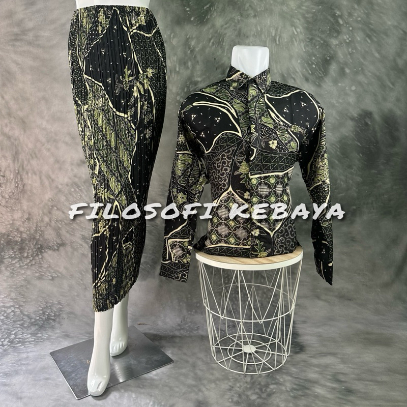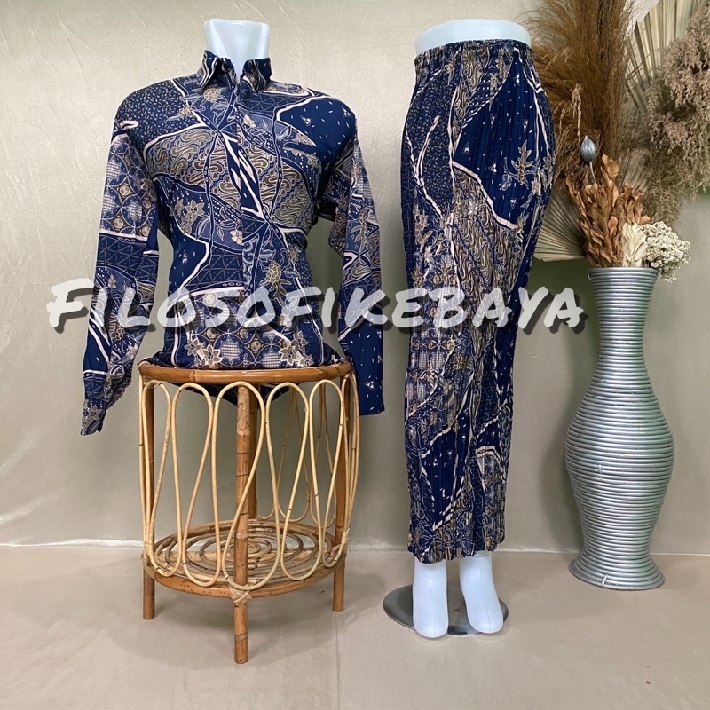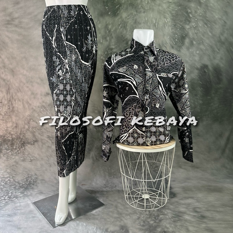 FILOSOFI KEBAYA - KEMEJA BATIK COUPLE ROK PLISKET / BAJU BATIK COUPLE / BATIK COUPLE LENGAN PANJANG / ROK PLISKET B