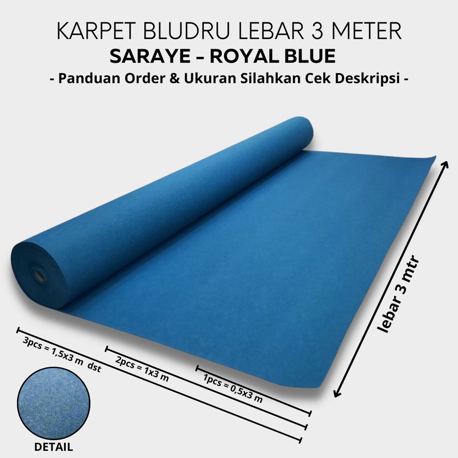 Karpet Brudu Polos SARAYE Meteran Murah 50cm x 3 Meter Royal Blue Lebar 3 Meter (Panggung Bazar Mushola Masjid Pameran Wedding)