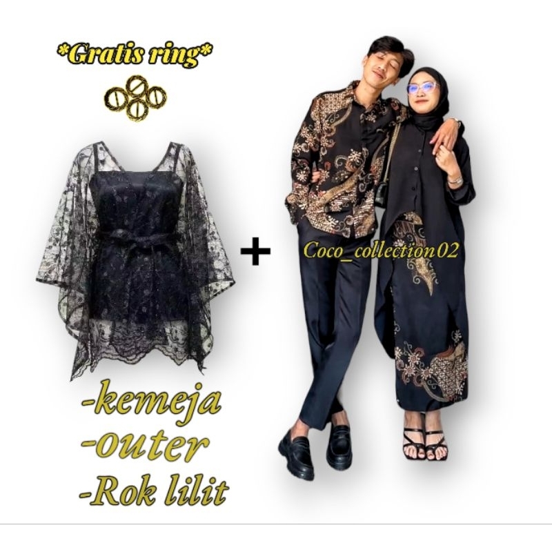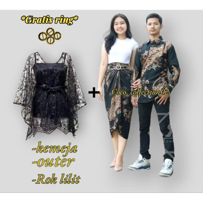 Couple Kemeja Batik Pria Rok Lilit Dan Outer Pita / Couple Kemeja Lengan Panjang batik terbaru 2024
