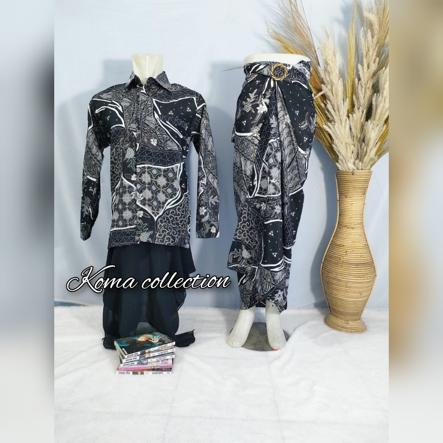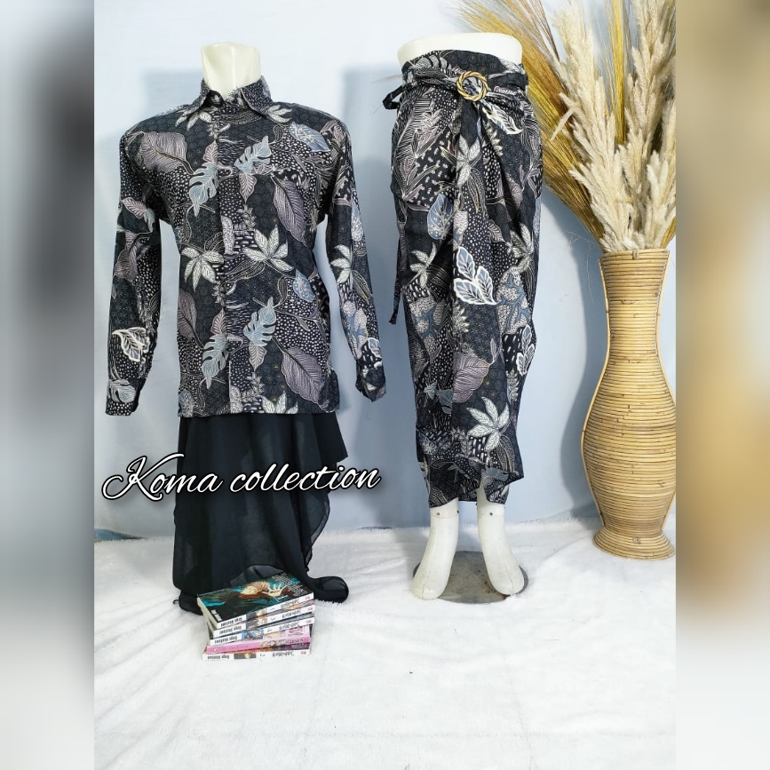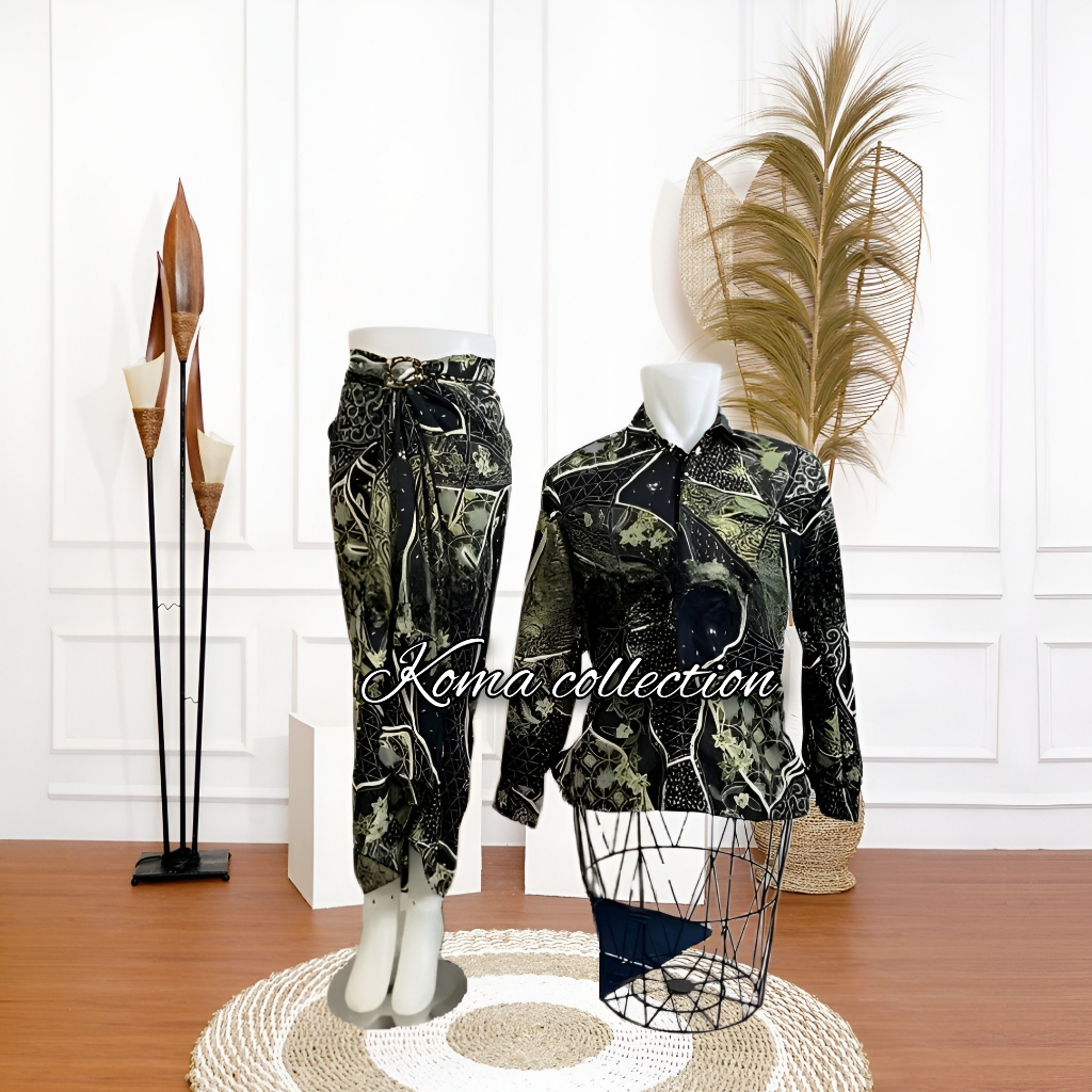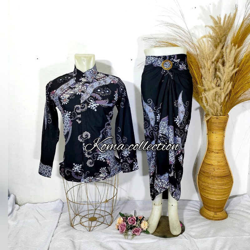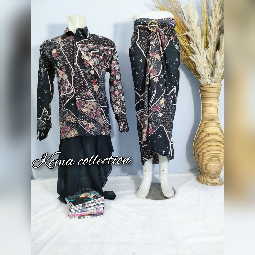 Baju Couple Kemeja Batik pria dan Rok Lilit Motif Asta Coklat / Couple kemeja Lengan panjang kondangan / Kemeja Bat