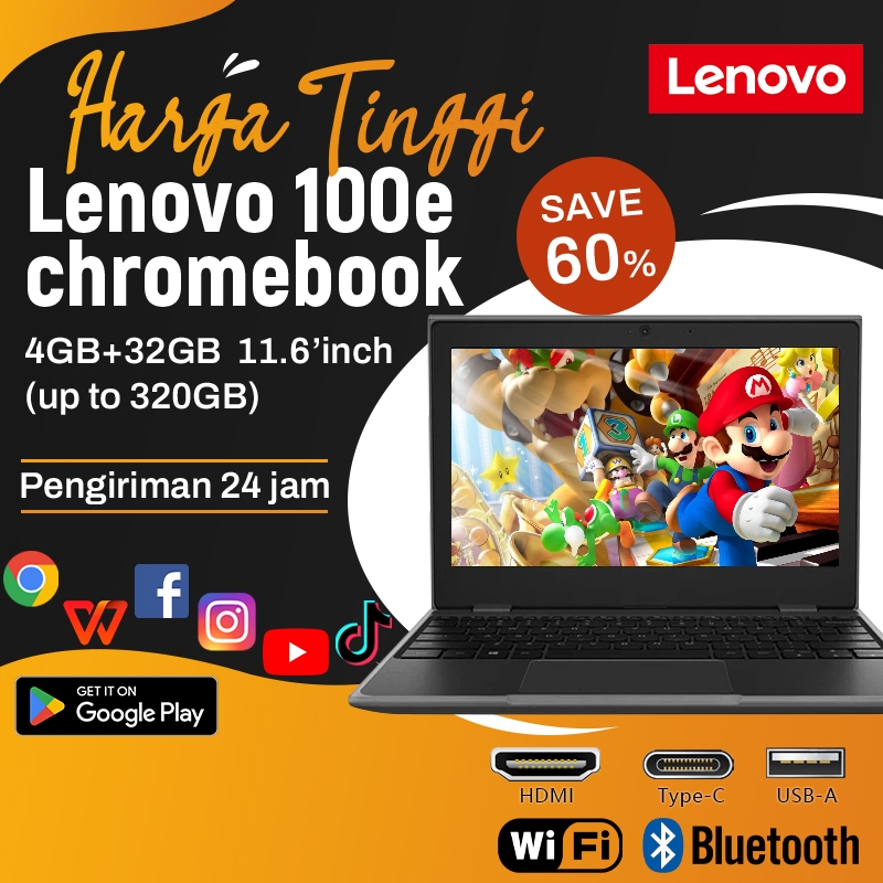 Lenovo 100e chromebook laptop murah/4GB RAM/32GB SSD/Siswa/kursus online&kerja jarak jauh/permainan