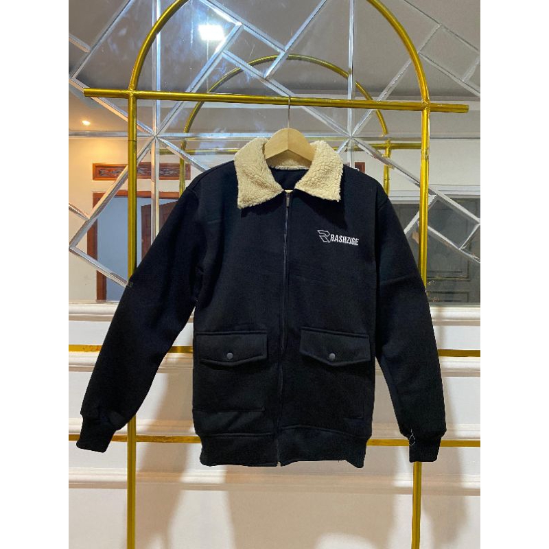 JACKET SHERPA PRIA JACKET LASKED BLACK PREMIUM PRIA WANITA TERLARIS