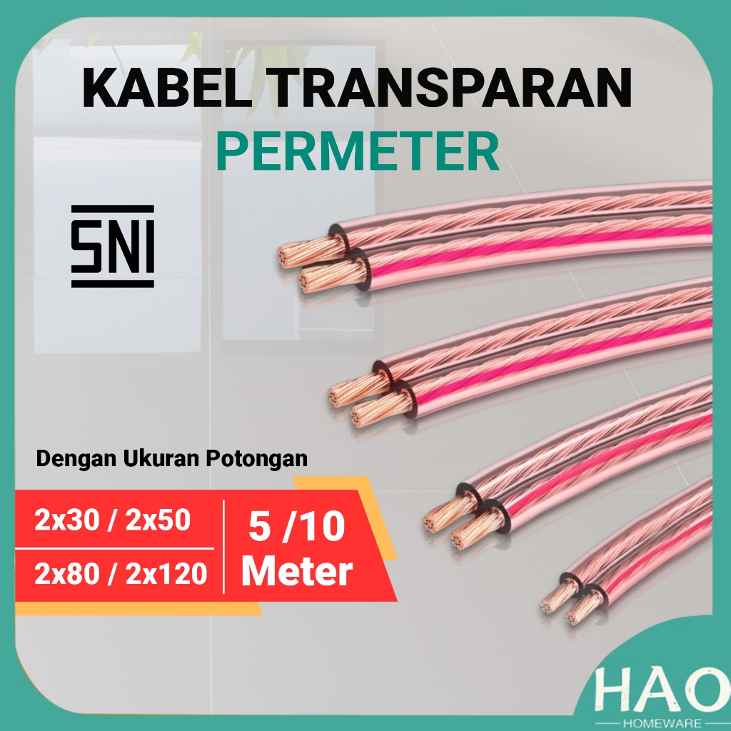 (Per-Meter) Kabel Listrik Transparan / Kabel Listrik Audio / Kabel Audio 2x30 / 2x50 / 2x80 / 2x120