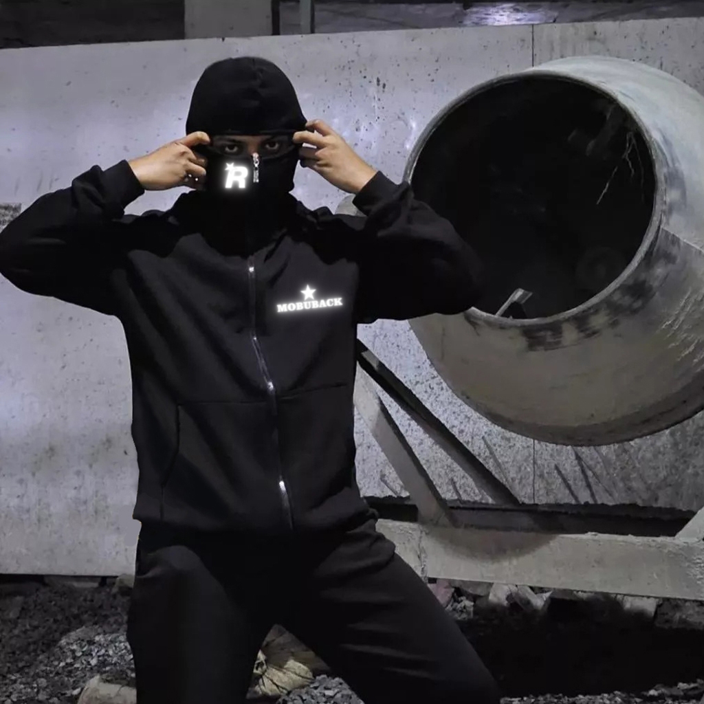 Mobuback Jaket Sweater Hoodie Balaclava Menyala Rockstar Fleece Lembut Boxy 280gsm Size M L XL XXL