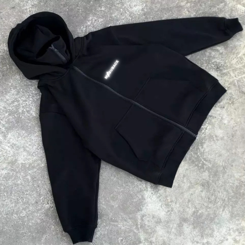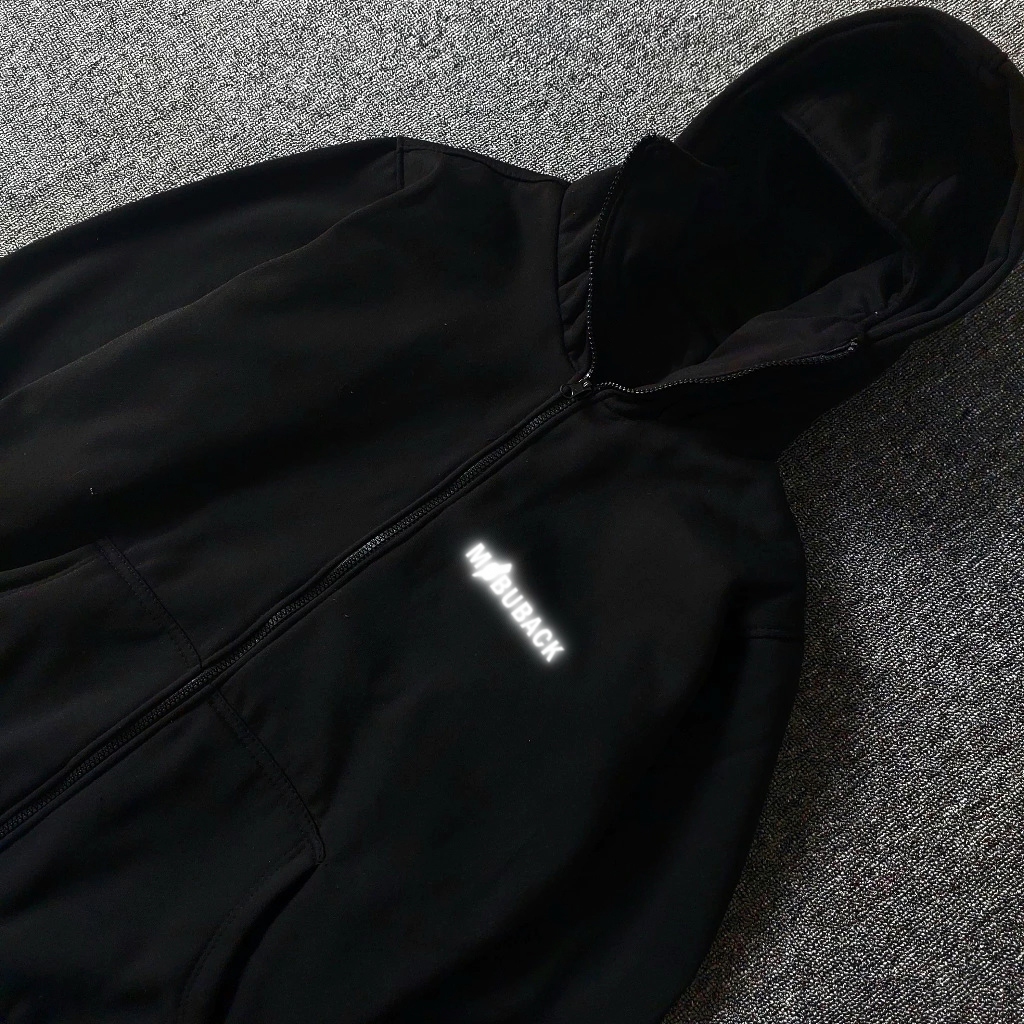 MOBUBACK Hoodie Balaclava Zipper Reflektif Sablon Menyala Frenemy Jaket Boxy Hitam Pria Wanita