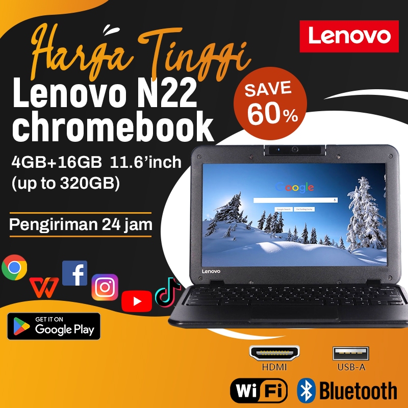 Lenovo N22 Chromebook Laptop/4GB RAM+16GB SSD/Membalikkan Kamera/Partai mahasiswa/Kantor jarak jauh