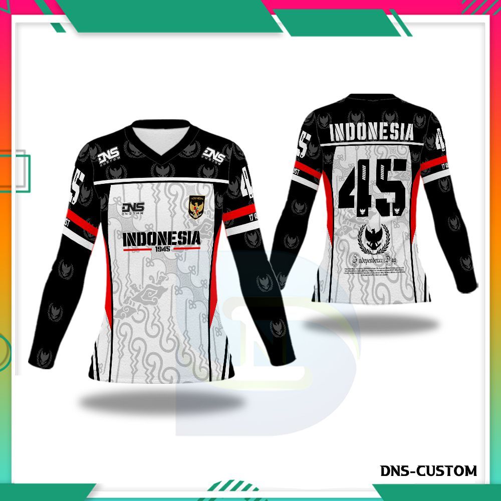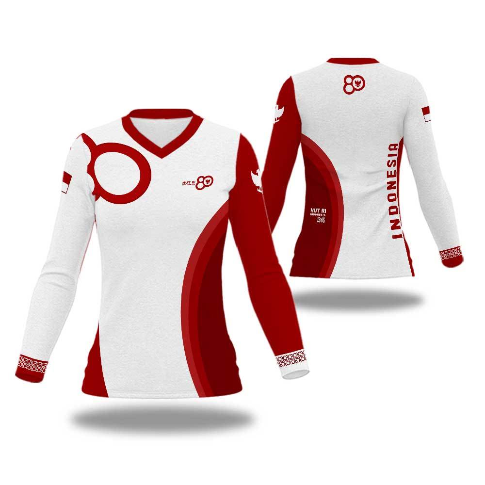 Kaos Agustus Wanita / Kaos Baju Jersey 17 Agustus 2025 Lengan Panjang Fullprint
