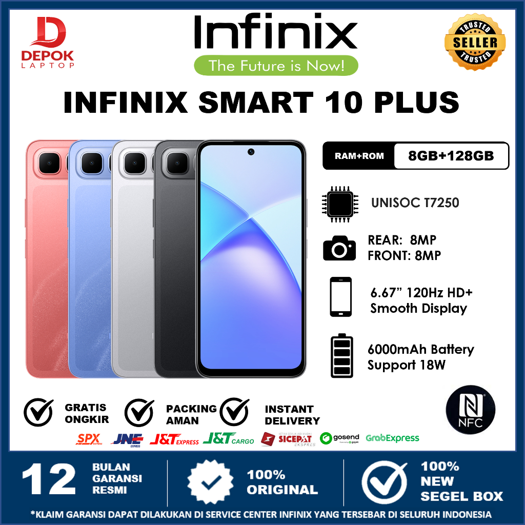New Infinix Smart 10 Plus NFC 8+8/128GB | 6.67" 120Hz HD+ | T7250 | 6000 mAh | IP 64 | Garansi Resmi