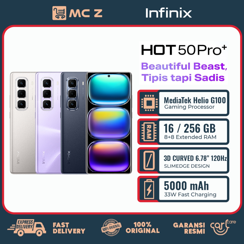 Official Infinix Hot 50 Pro+ 8/256GB - Up to 16GB Extended RAM - Helio G100 - 6.78 inch 3D Curved 120Hz Amoled - 50MP -