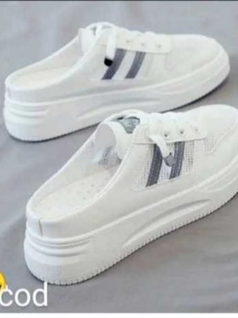 Sepatu sandal wanita trendy slop slip on anti slip motif garis list NEW semua musim soes