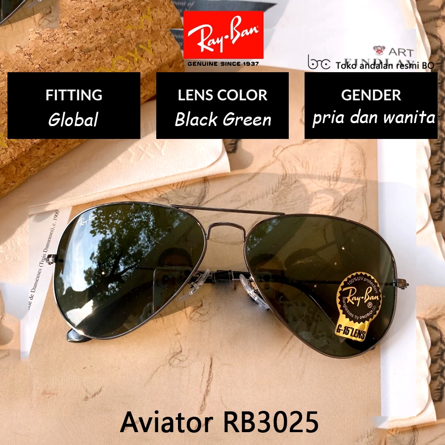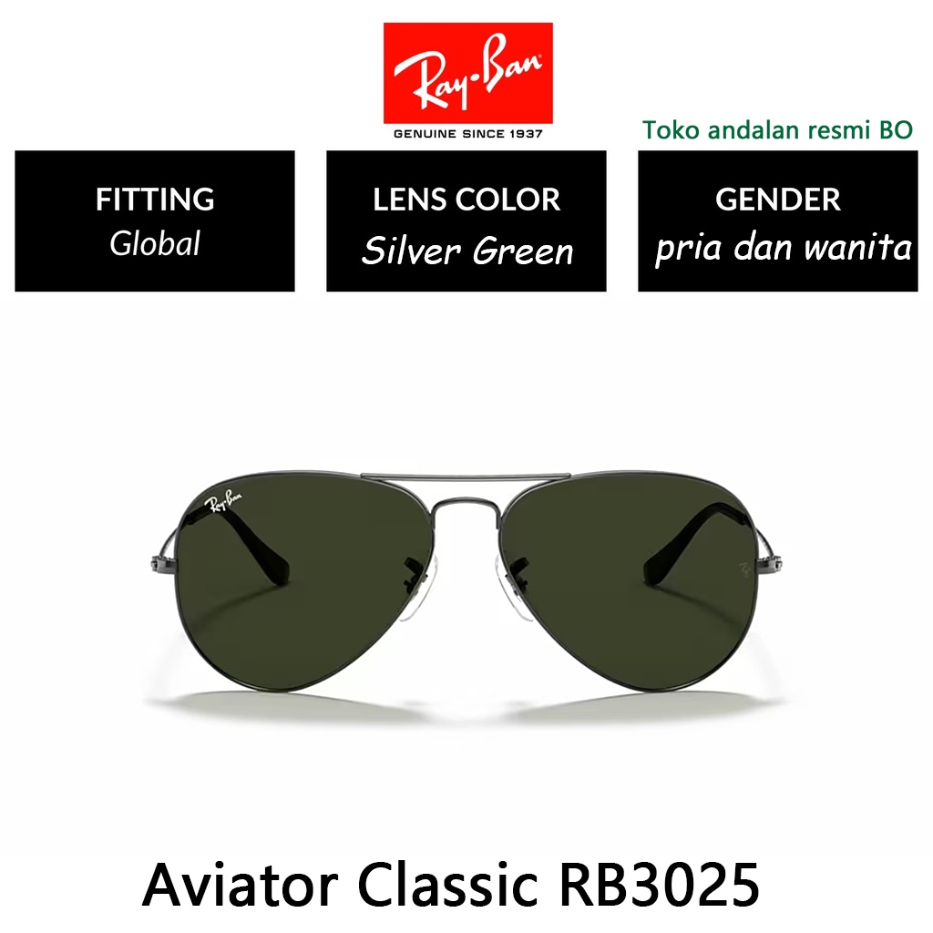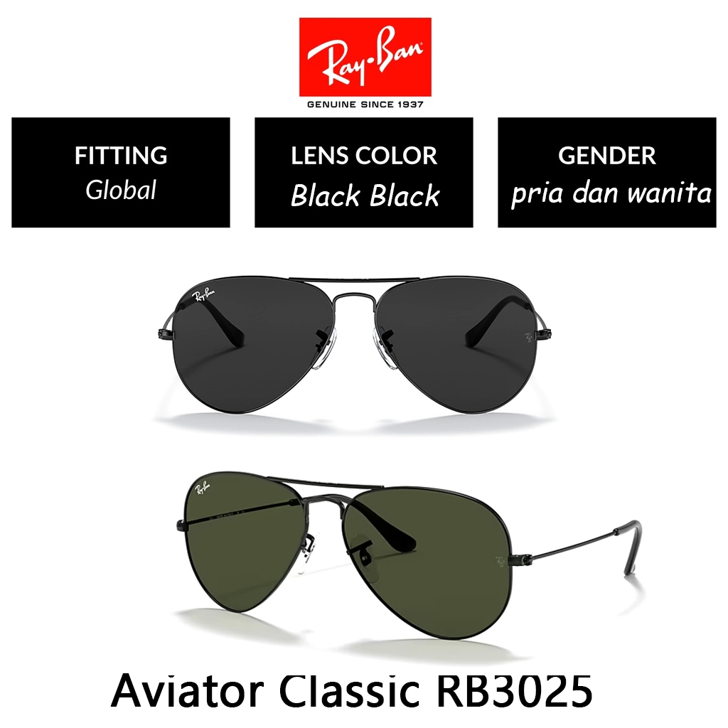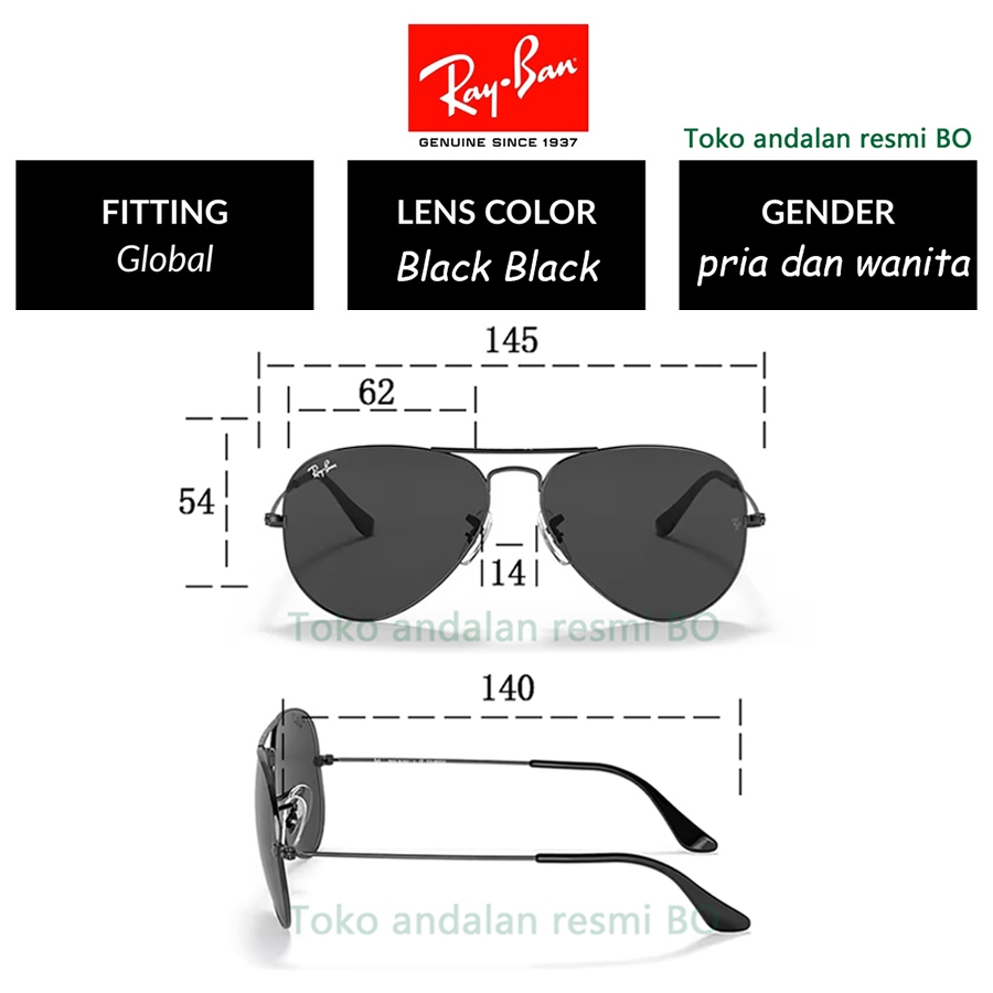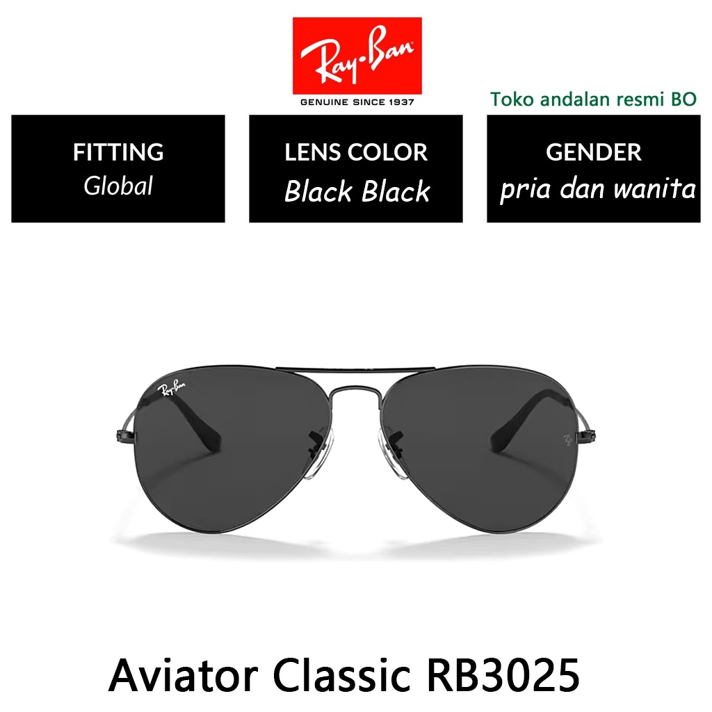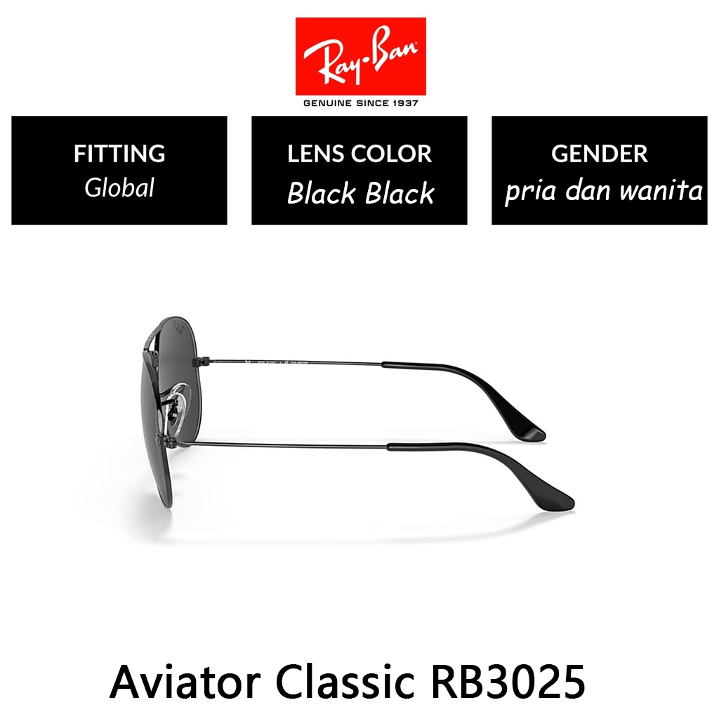 Kacamata Hitam RAY-BAN AVIATOR Large Metal RB3025 Original 100 PERSEN Sunglasses Black 62mm Pria Wanita UV