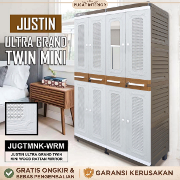 Lemari Plastik Baju Jumbo Full Rak Kunci Cermin Kaca 4 Pintu Gratis Ongkir