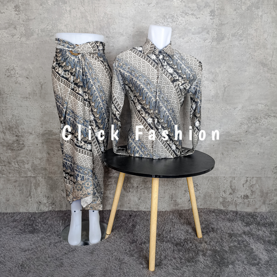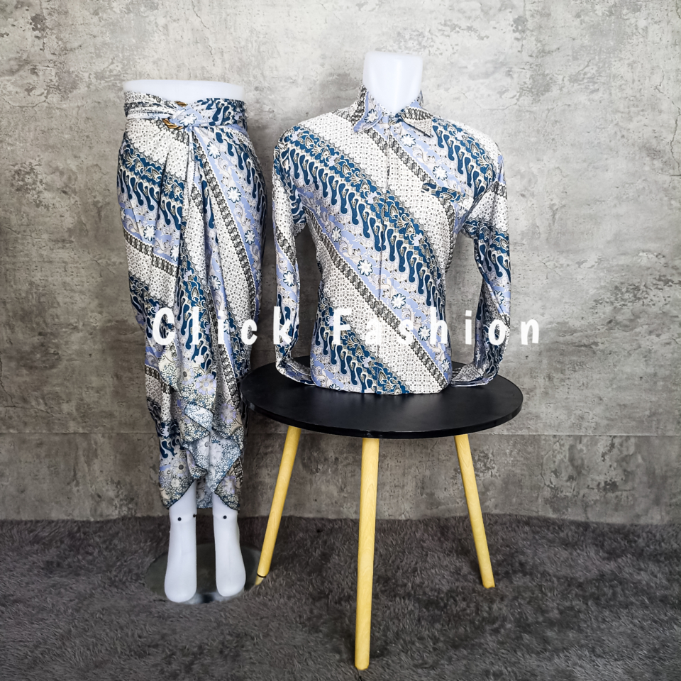 NEW ARRIVAL CLICK FASHION- BATIK COUPLE PASANGAN MODERN KONDANGAN LENGAN PANJANG DAN ROK LILIT BATIK COUPLE SERAGAM