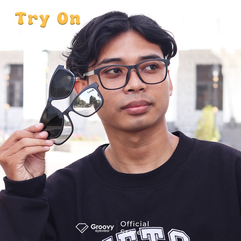 Groovy Eyewear - Kacamata Jhon Minus Clip On Lensa Anti Radiasi Kacamata Sunglass Kacamata Hitam