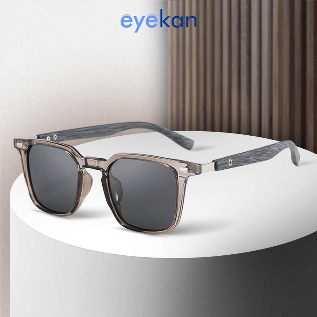 Eyekan Kacamata Hitam Motif Kayu Anti Uv 400 Sunglasses Bisa Minus Frame Bentuk Kotak Fashion Pria dan Wanita 280876