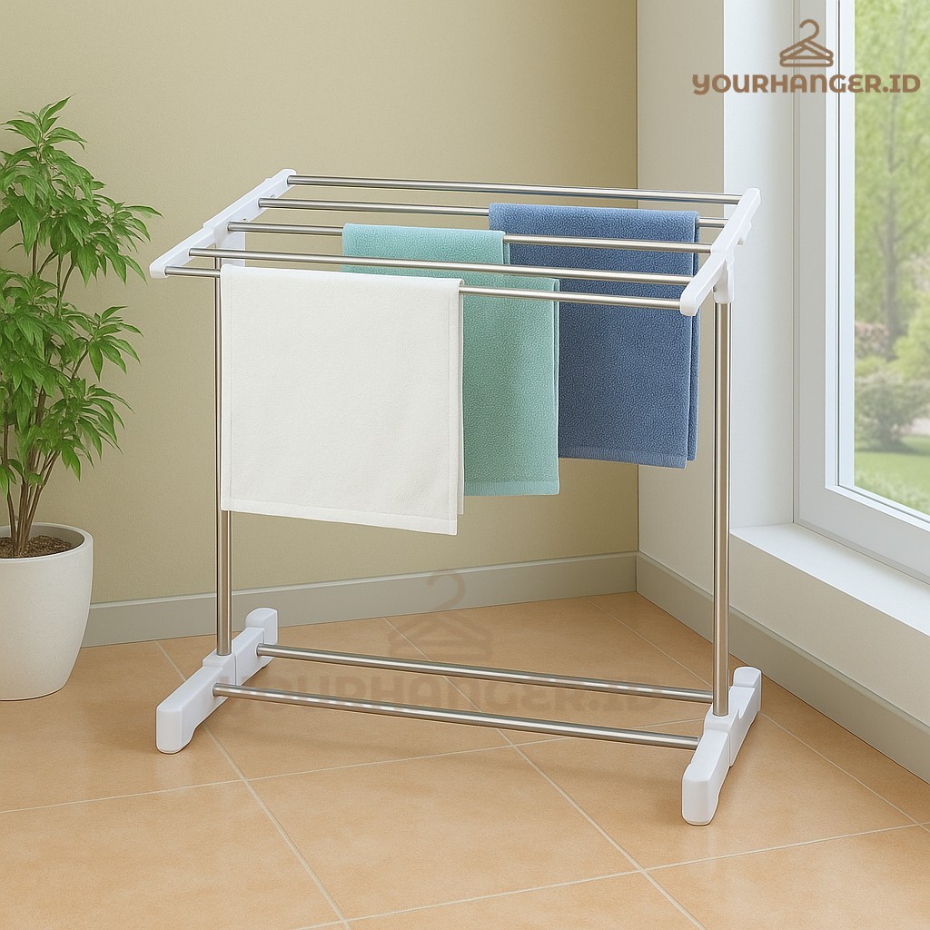 JEMURAN HANDUK BERDIRI JEMURAN HANDUK LIPAT STAINLESS RAK PENGERING HANDUK LIPAT YOURHANGER.ID