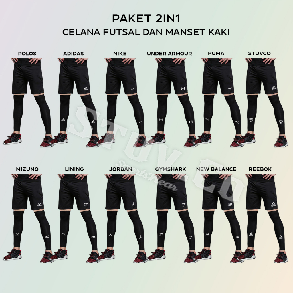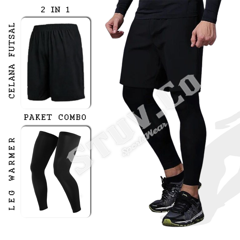2IN1 SETELAN CELANA PENDEK DRY FIT OLAHRAGA LEG WARMER SET MANSET KAKI OLAHRAGA PRIA WANITA