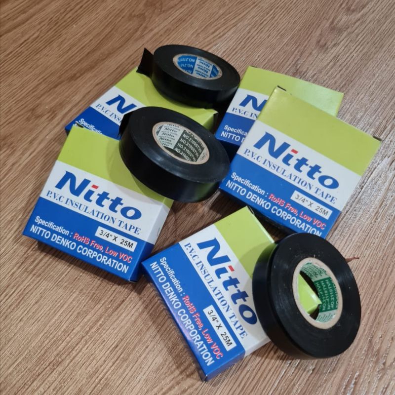 Paket isi 10pcs Isolasi solasi selotip nitto original "3/4 18mm x 12 & 25 meter pembungkus kabel listrik