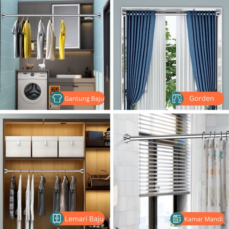 OLHOME 40CM-460CM TIANG GORDEN FLEKSIBEL JEMURAN BAJU TIANG JEMURAN PORTABLE BESI GORDEN TIANG HORDENG GANTUNGAN BAJU【TA