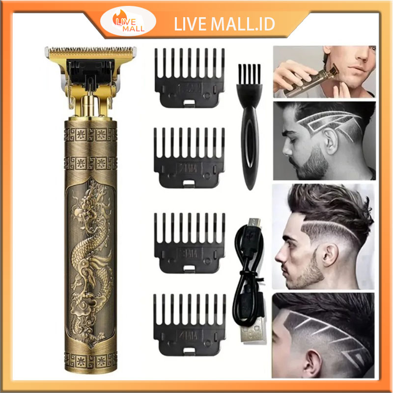 ALAT CUKUR JENGGOT/MESIN CUKUR RAMBUT LISTRIK/USB RECHARGEABLE RAZOR/NAGA T9 VINTAGE ALAT CUKUR LED