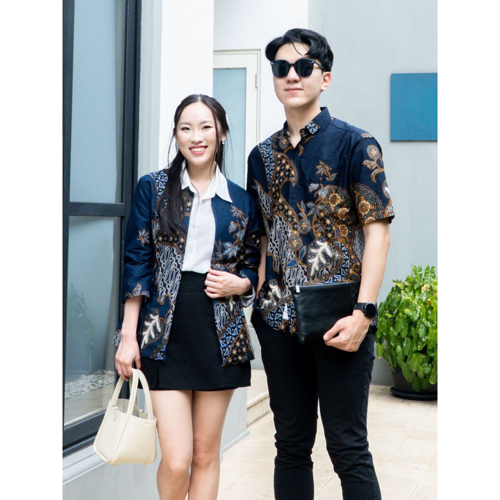 Swipe Up Kemeja Batik Couple Pria Wanita Modern Akai Navy Brown