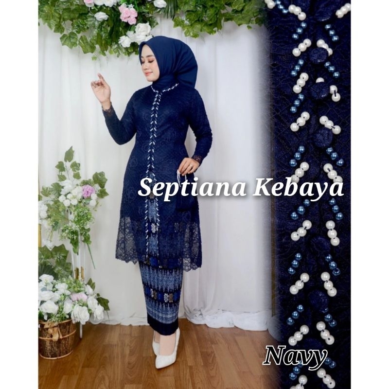baju kebaya couple ibu besan warna navy / kebaya modern tunangan couple keluarga / kebaya couple batik Toraja navy