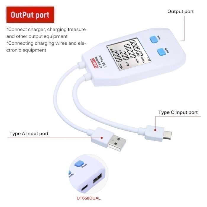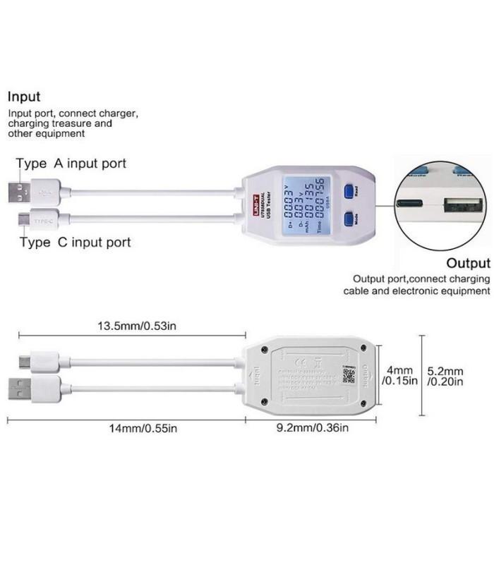 TERLARIS UNIT UT658DUA PORTABE DUA USB VOTMETER POWER METER TESTER