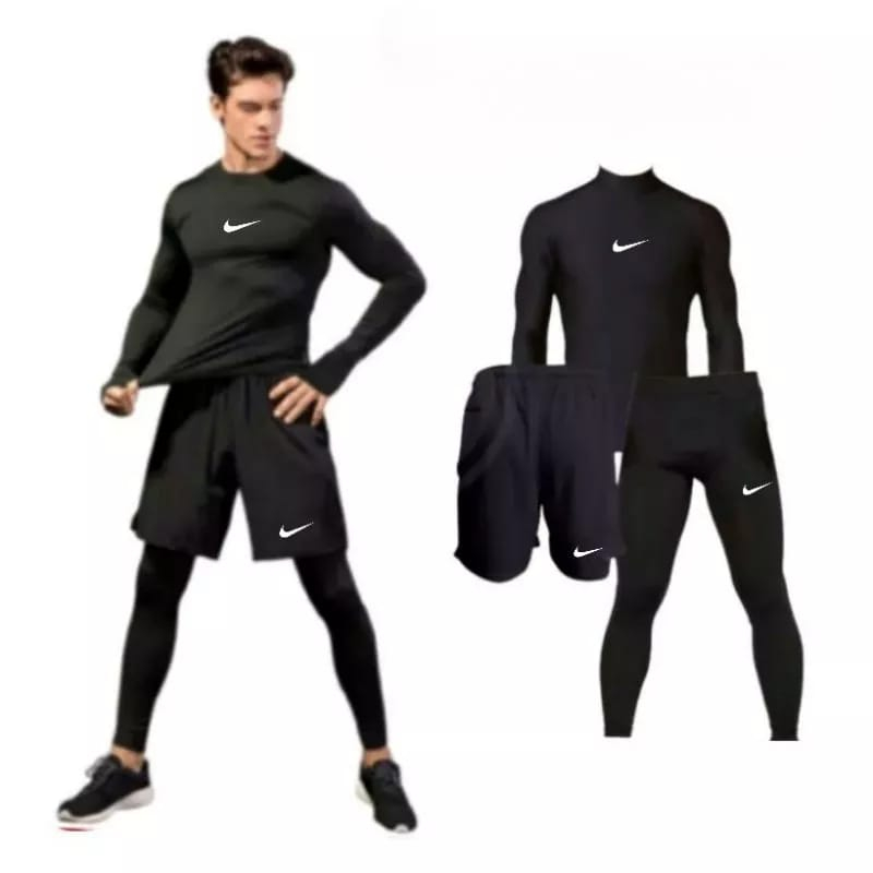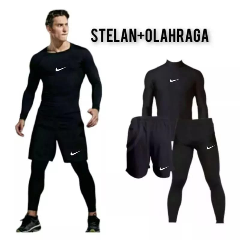 set baselayer lengan panjang manset baju legging celana olahraga pria fustal sepak bola voli running termurah