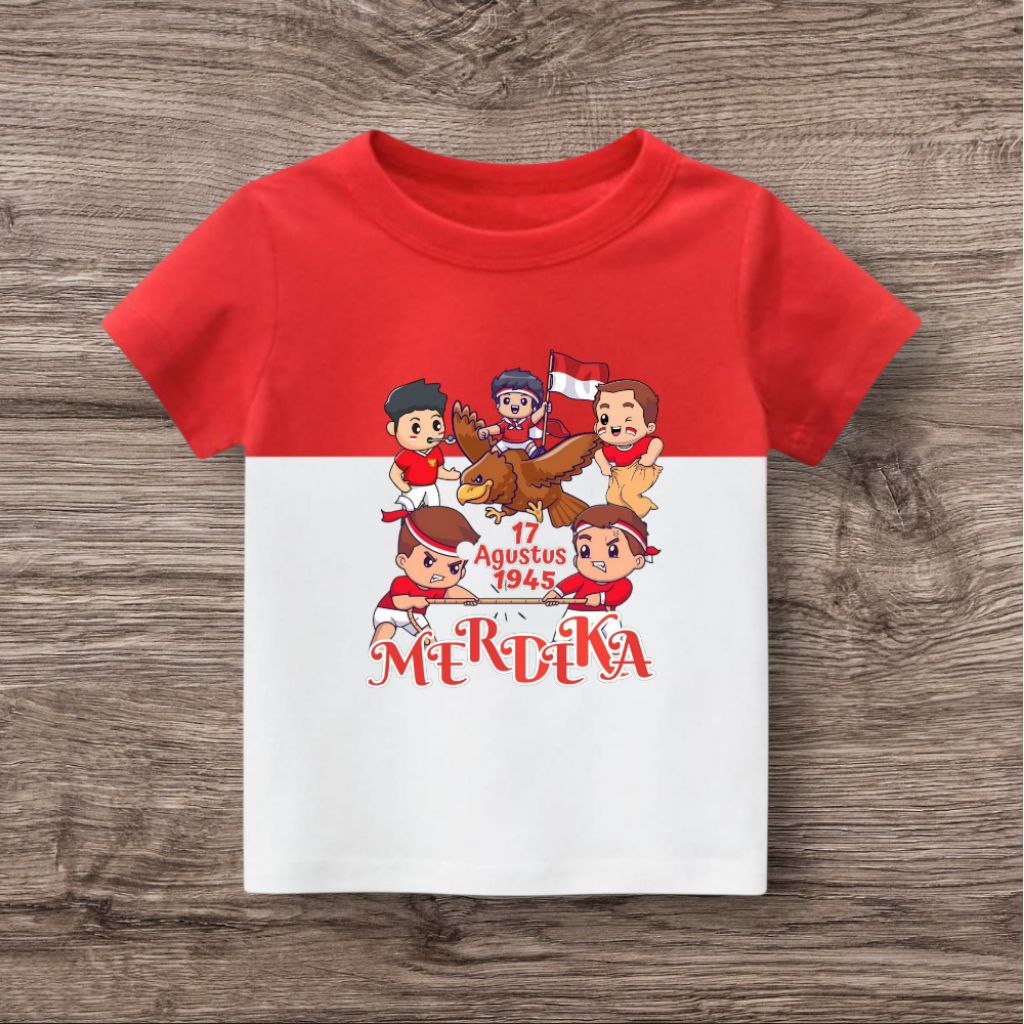 KAOS ANAK-ANAK AGUSTUSAN UNISEX UMUR 1-9 TAHUN/KAOS KOMBINASI MERAH PUTIH