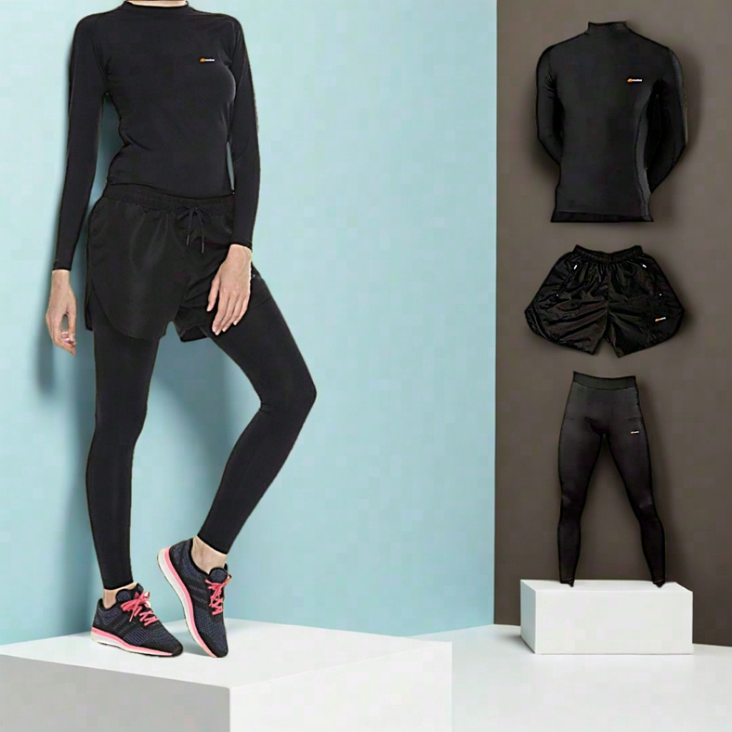 Bundling Paket 3 in 1 Pakaian Olahraga Pria Wanita/Unisex Manset + Celana Running Parasut + Legging Panjang