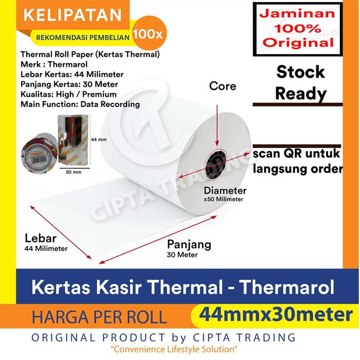 PROMO 8.8 KERTAS THERMAL THERMAL PAPER THERMAROL 44MM X 30METER 1 PC