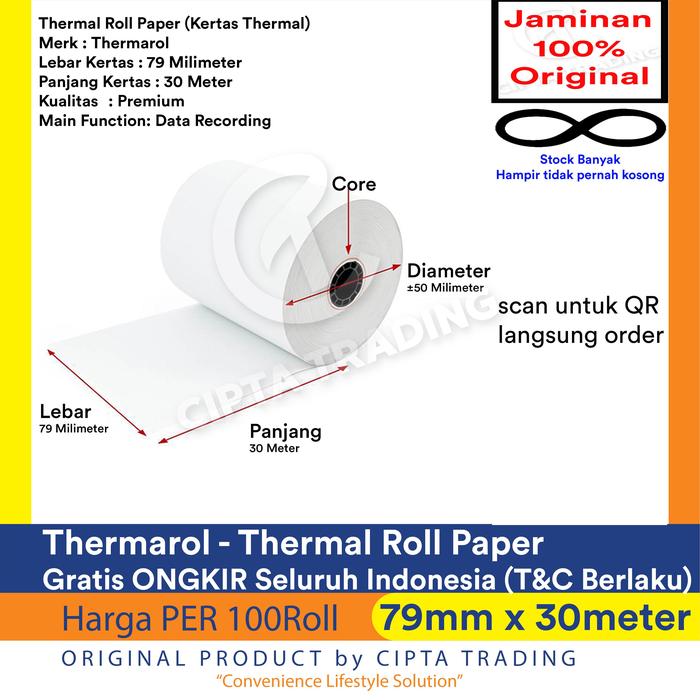 PROMO 8.8 KERTAS THERMAL THERMAL PAPER THERMAROL 79MM X 30METER (100ROLLS)