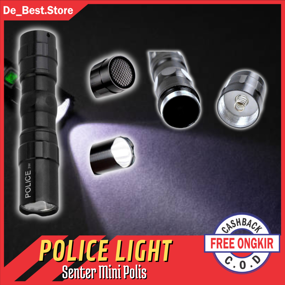 SENTER MINI POLISI SWAT LED FLASHLIGHT ANTI AIR 3W - SENTER PENERANGAN JARAK JAUH