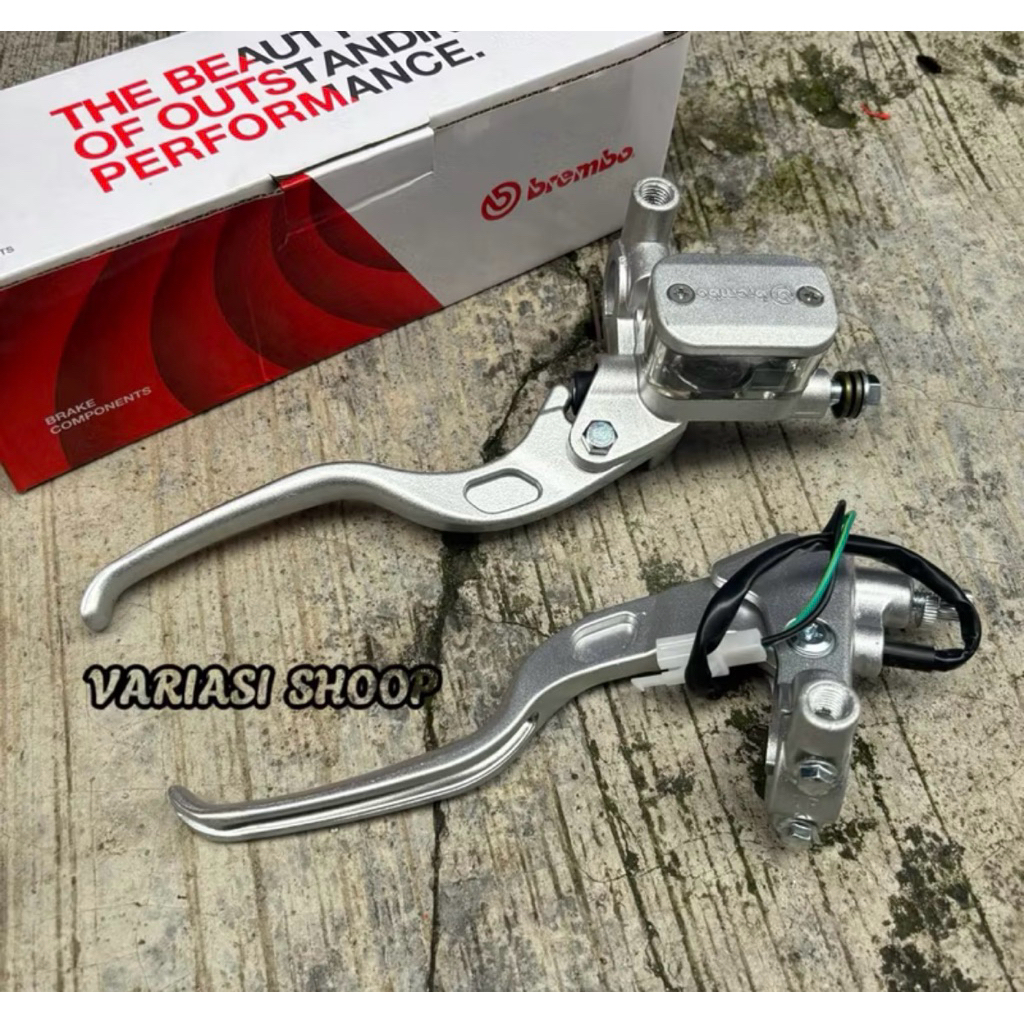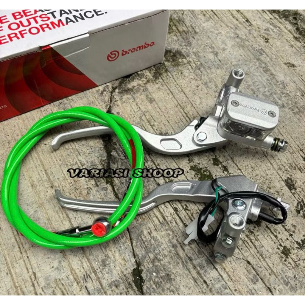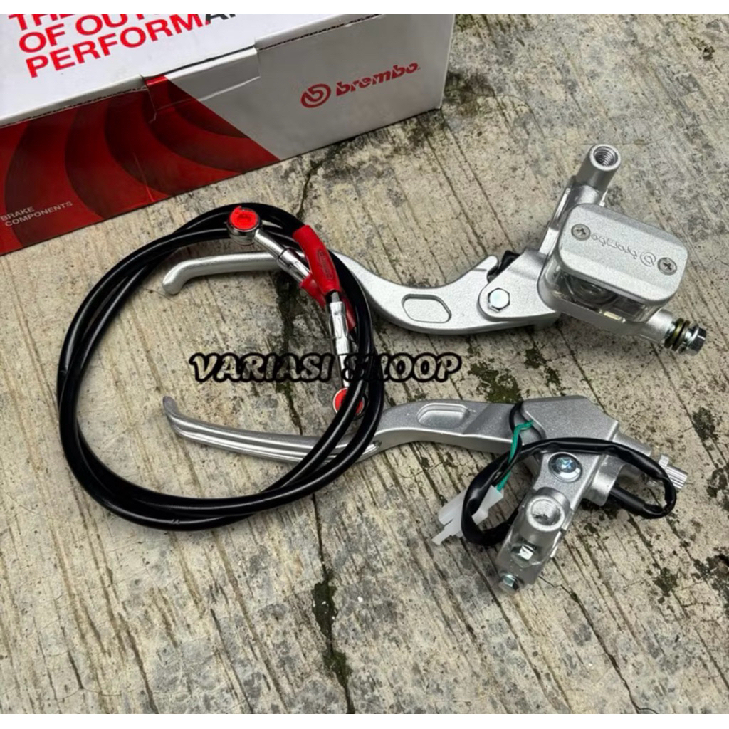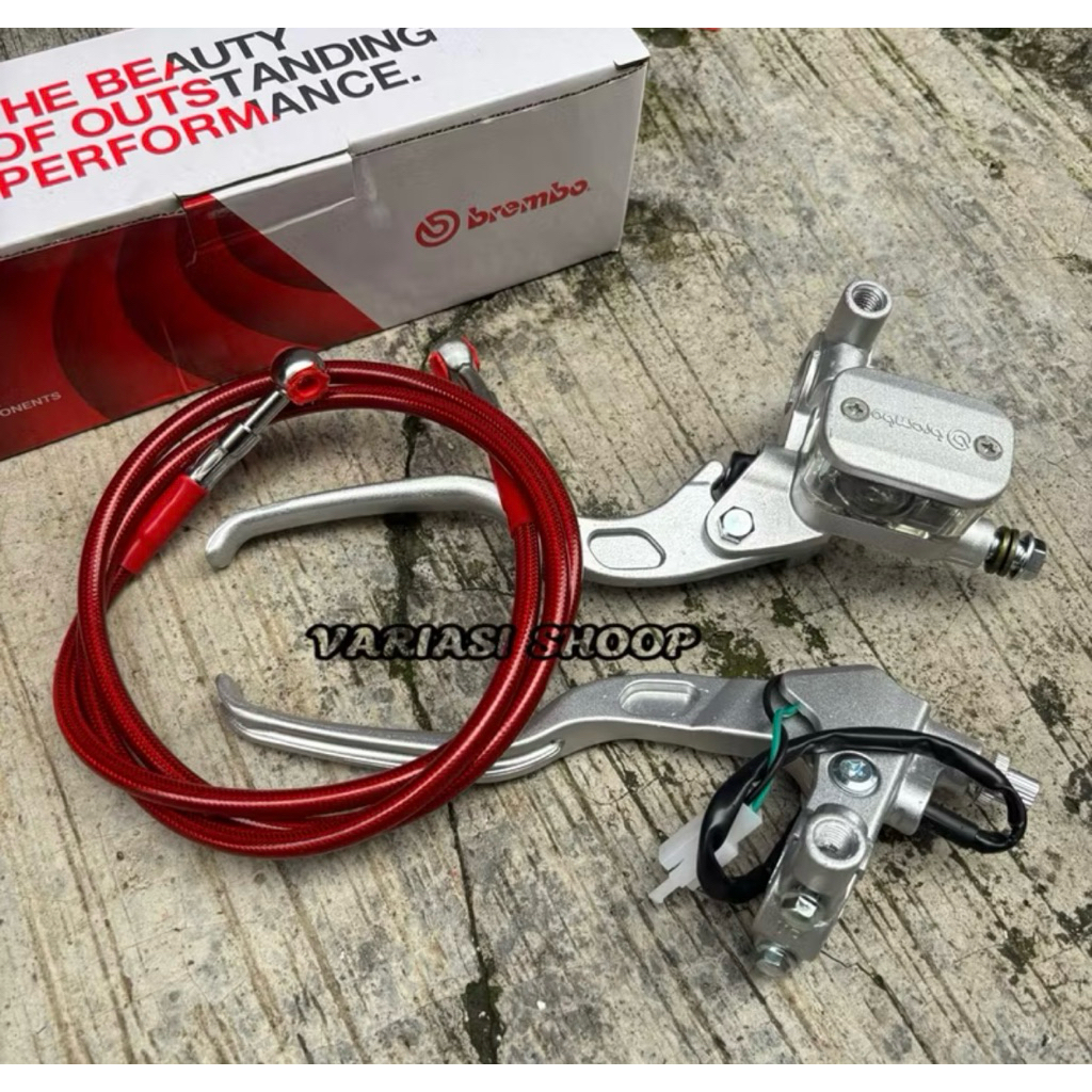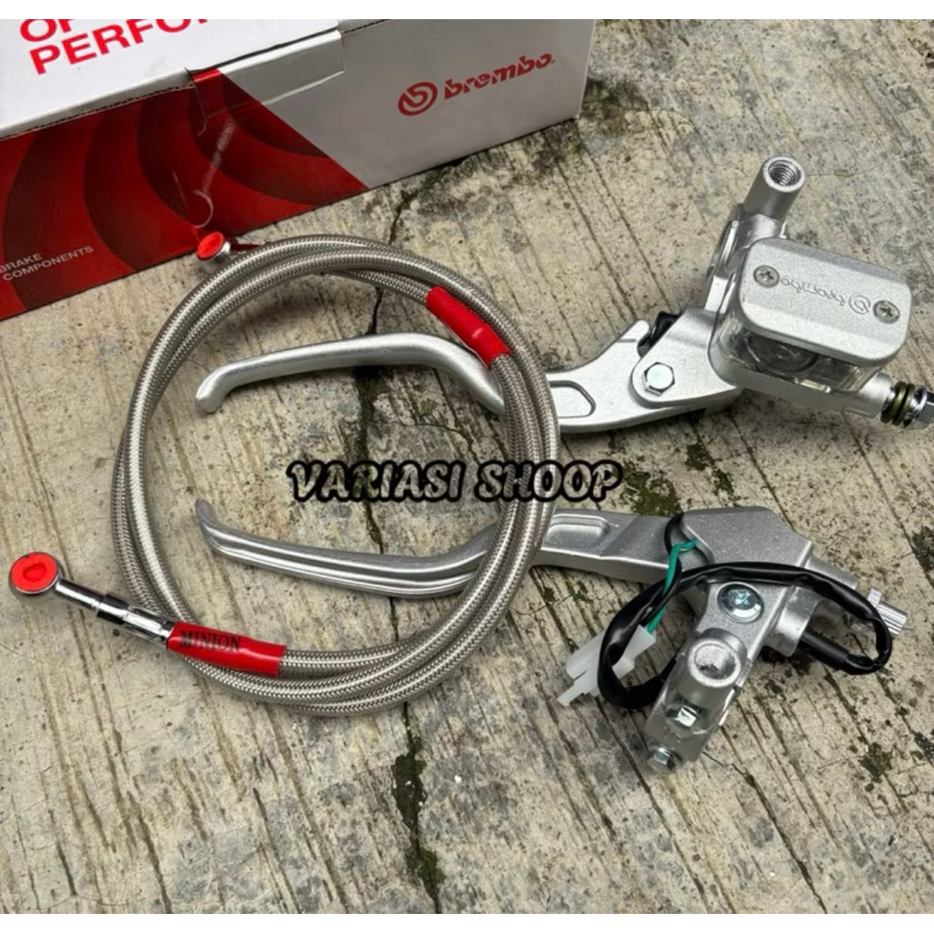 PAKET HEMAT 2IN1 MASTER REM BREMBO TABUNG KOTAK STANDAR SERIES SILVER 1SET KIRI KANAN PLUS SELANG REM DEPAN CARBON 130