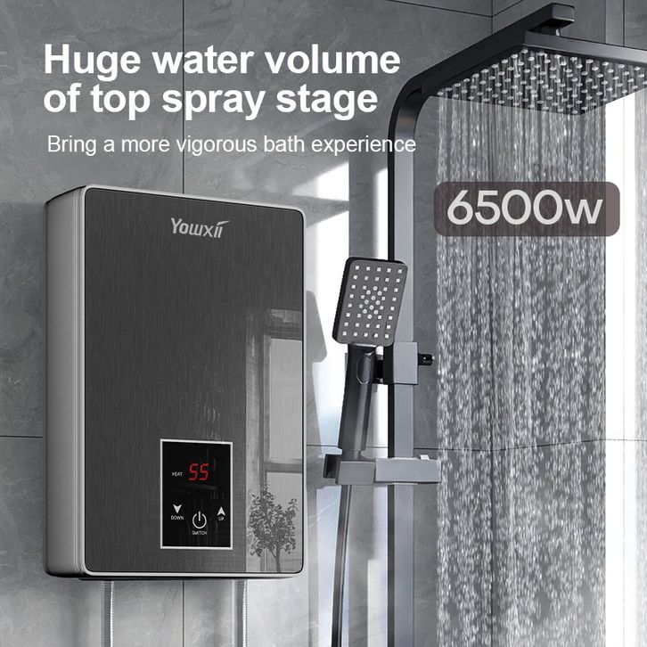 TQTQ Water Heater Hitam Putih Pemanas Air Listrik Instan Pemanas Air Kamar Mandi